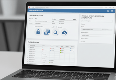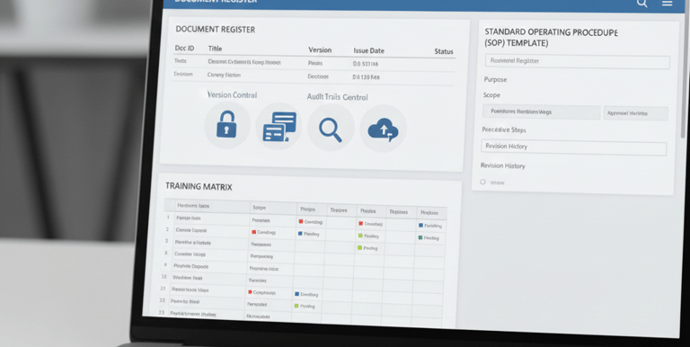 • Document registers, training matrices and compliance templates